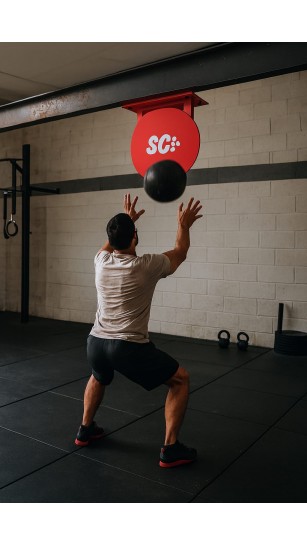 La Cible Wall Ball Pro a été spécialement dimensionnée et conçue pour offrir une plateforme robuste et sécurisée destinée à la projection de medicine balls ou wall balls. Elle est pensée pour s’adapter aux espaces d’entraînement professionnels ou personnels : box CrossFit, home gym, garage gym, etc. Elle permet d’entraîner la précision, la puissance et l’explosivité du pratiquant, tout en préservant les murs ou structures d’entraînement grâce à une zone de contact dédiée.