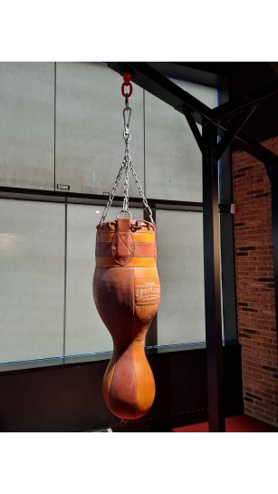 Le sac de frappe vintage SportCom est fabriqué avec un cuir luxueux, qui vous garantit esthétisme et résistance. Le logo SportCom brodé à la main apposé sur une pièce de cuir cousue main apporte une touche raffinée à ce sac de frappe haut-de-gamme.