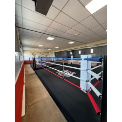 Notre ring de boxe training avec podium de 30cm est disponible dans 3 dimensions différentes. Une fixation au sol est préconisée mais non obligatoire. L’assemblage se fait sans visserie par système d'emboitage. Le montage de ce ring de boxe est simple, une notice vous est fournie avec le ring.