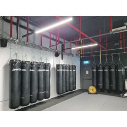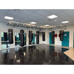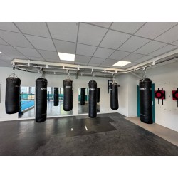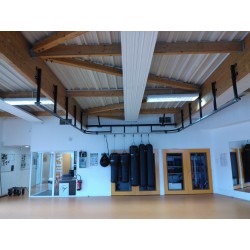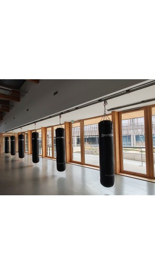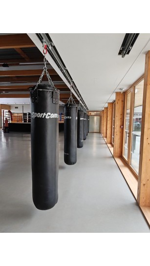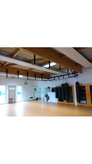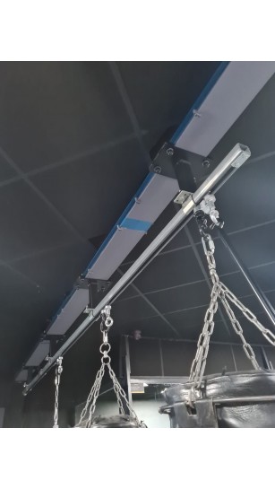 Our overhead conveyor rail for punching bags is the optimal solution for saving space in shared spaces. This conveyor rail is supported by a supporting structure suspended either from the ceiling, a concrete slab, or the building structure when the latter is accessible and can accept the load and vibration.